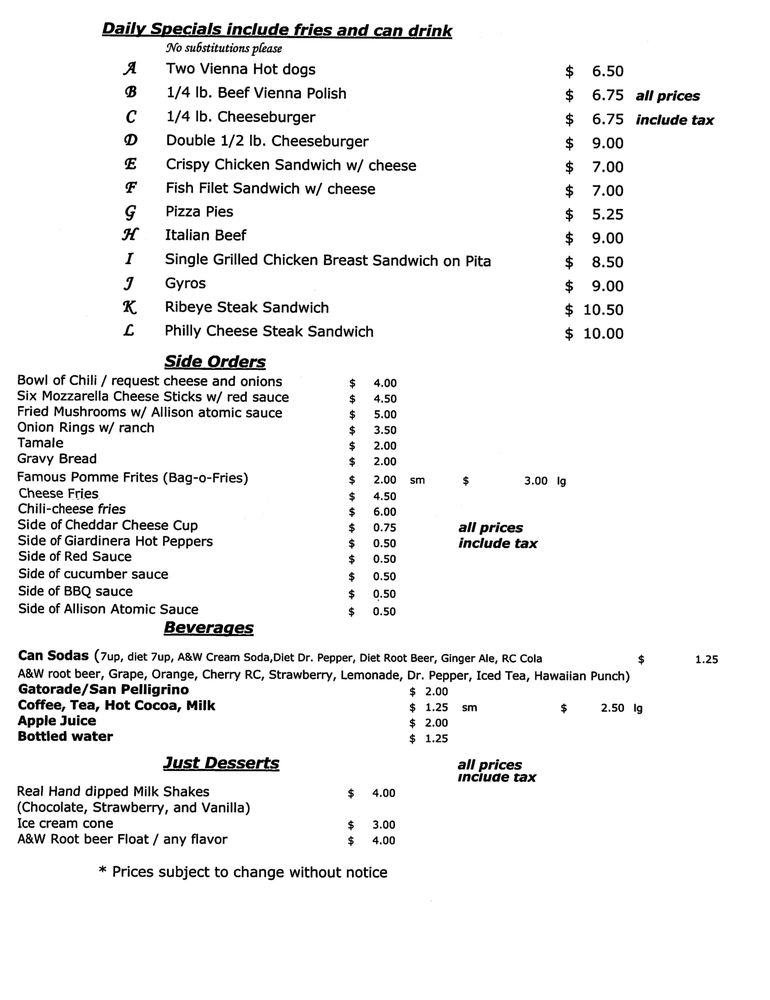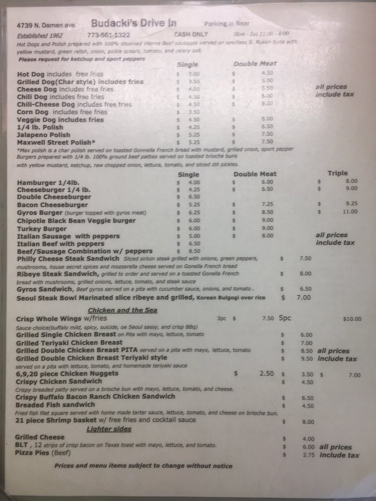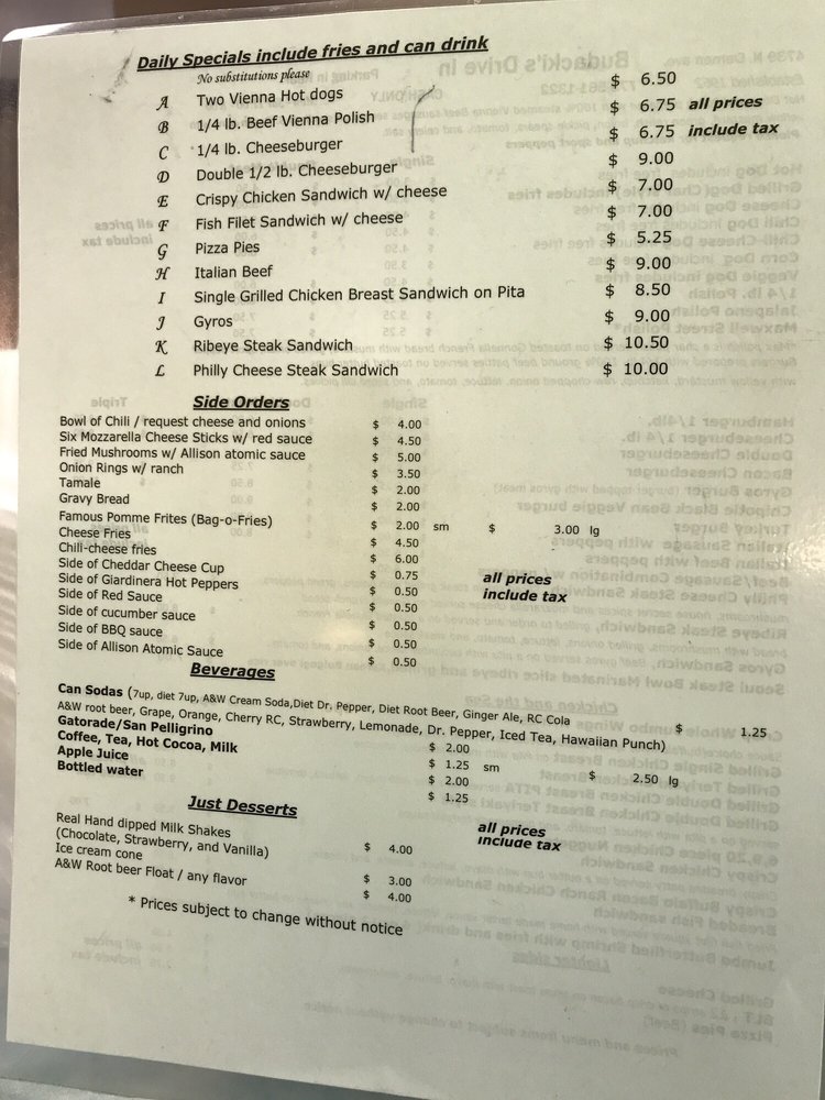 Budacki's Drive In Menu (Update 2025)