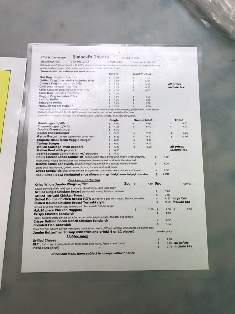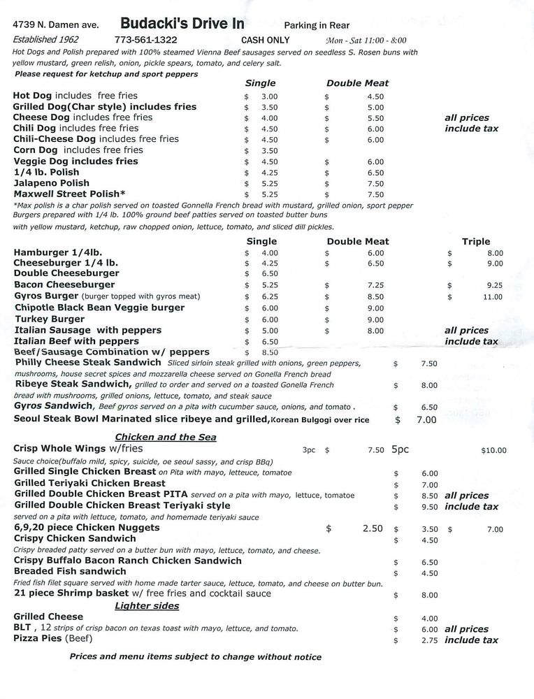 Located in the heart of Chicago, Budacki's Drive In is a hidden gem offering a variety of fast food delights. Known for their crispy chicken wings and mouth-watering Korean Steak Bowl, this Asian-owned restaurant provides a unique twist on classic favorites. Customers rave about the quick and friendly service, as well as the affordable prices. With options like the char dog with fries or the loaded double cheeseburger, Budacki's Drive In has something for everyone. The cozy outdoor seating and diverse menu make it a perfect spot for a casual lunch or a quick bite to eat. Don't miss out on their famous mint chocolate chip shake or the Italian beef combo. Whether you're a local looking for a new lunch spot or a visitor seeking authentic Chicago flavors, Budacki's Drive In won't disappoint.